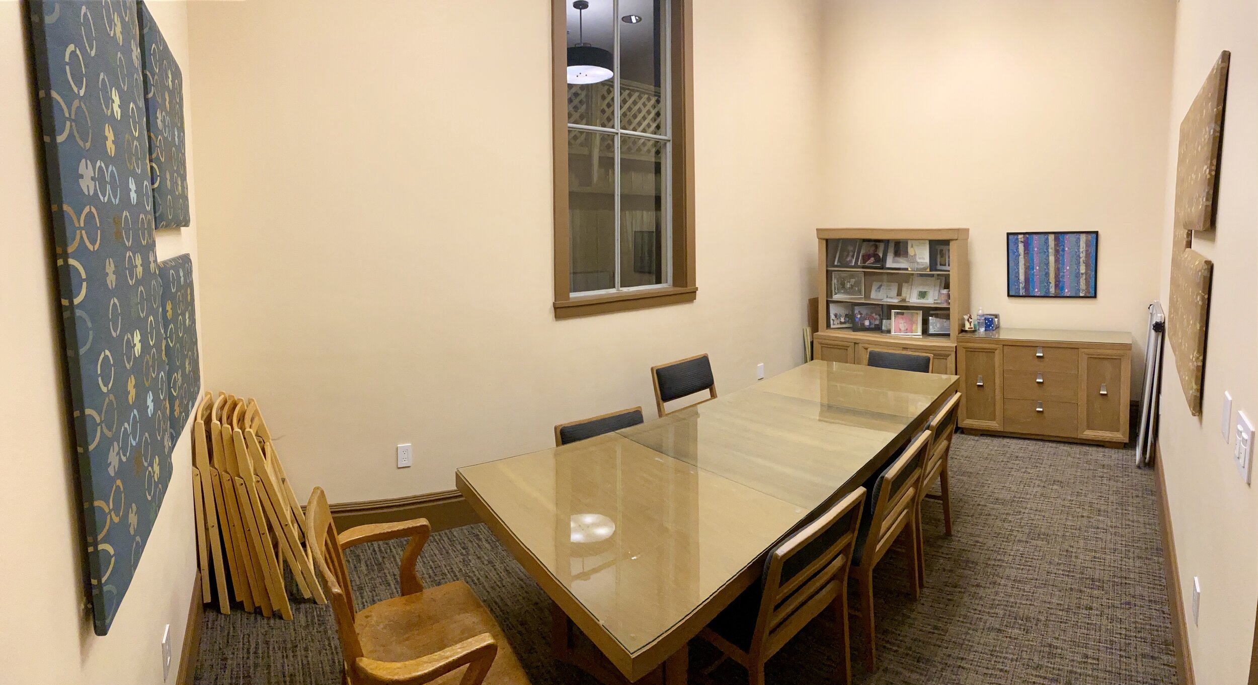 The Meditation Room is 106 square feet with a capacity of 6 people. this room could be used for meditation, private music lessons or practice, or small discussion groups. 1 GB Wifi access available.